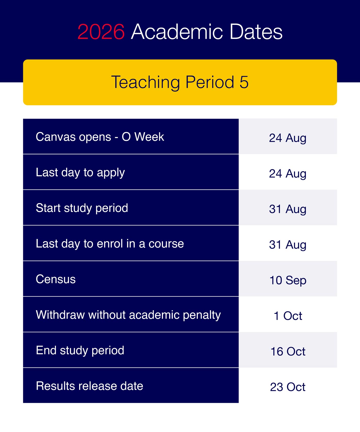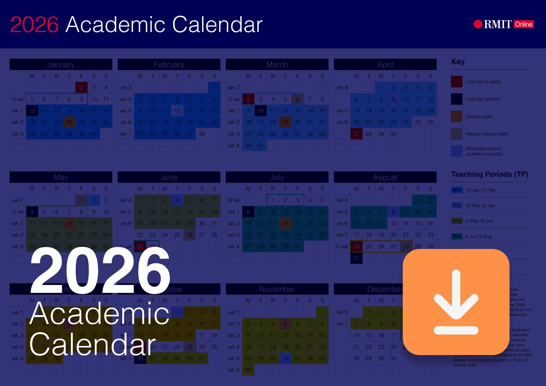 Part of RMIT's unique online postgraduate study model means you have the opportunity to enrol at six different times throughout the year. The six study periods last seven weeks each, and focus on one course at a time so you can consolidate your learning.